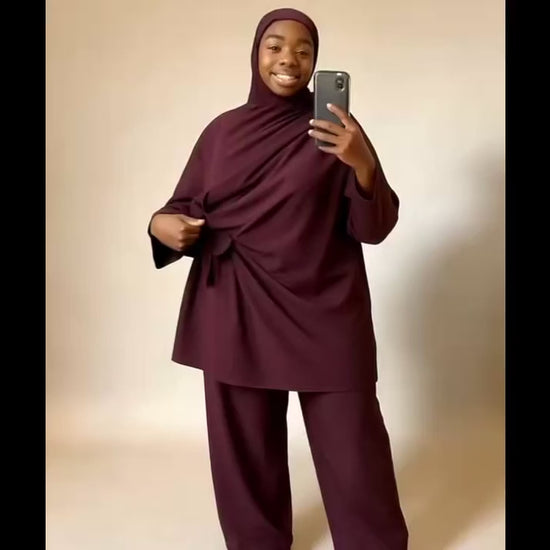 Ensemble 3 pièces : tunique, pantalon, hijab de bain